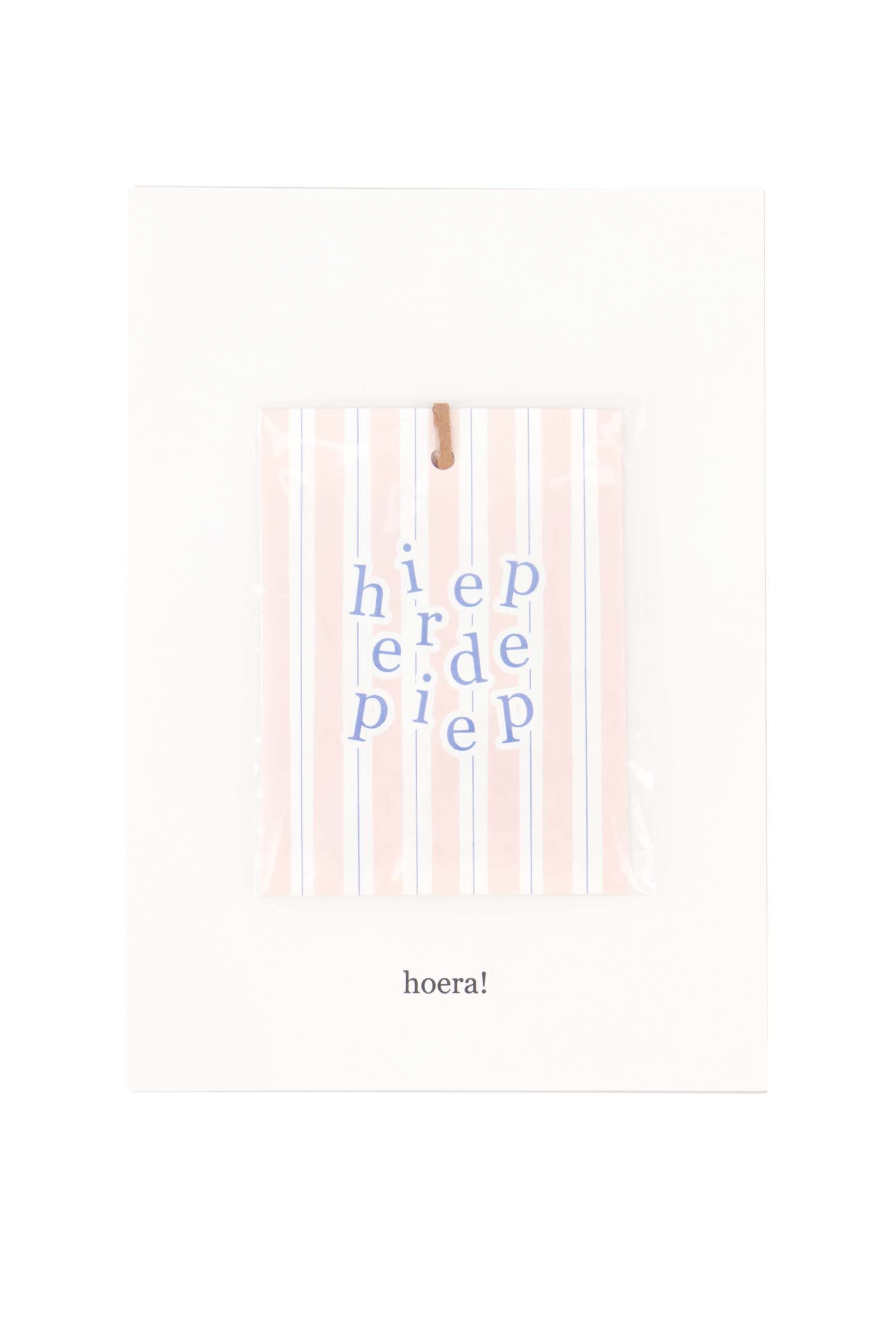 Dit Zusss ansichtkaart mini geurzakje is perfect als feestelijke verrassing. Het ansichtkaart mini geurzakje valt op door de zachte wit-roze-blauwe kleuren en de vrolijke print met 'hieperdepiep hoera'. Het product is gemaakt van hoogwaardig papier en textielmaterialen, zorgvuldig geselecteerd voor kwaliteit en duurzaamheid. Met afmetingen van ongeveer 8 x 10 cm is het compact en gemakkelijk mee te geven.