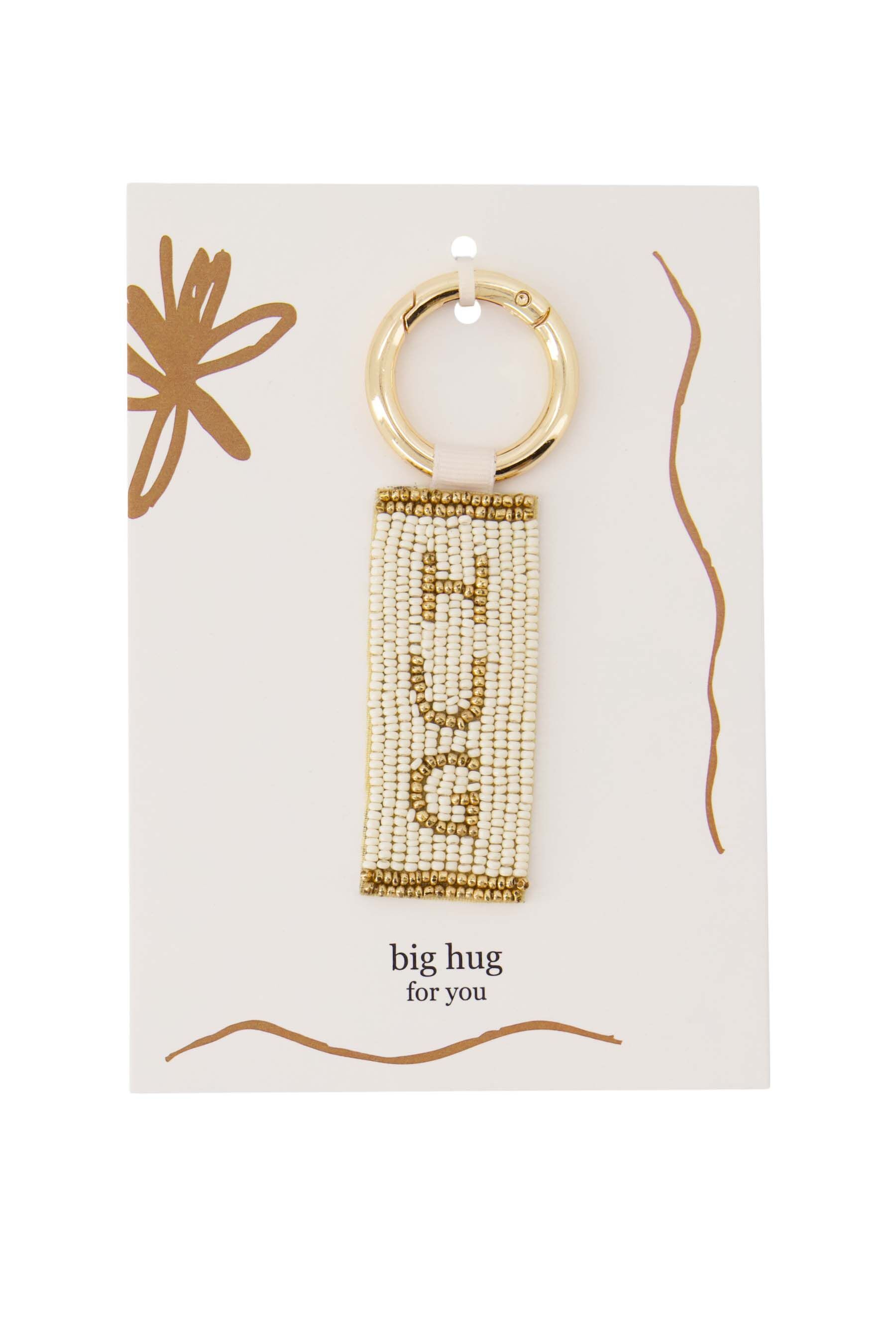 De Zusss sleutelhanger is een stijlvolle accessoire die je makkelijk overal mee naartoe neemt. Deze sleutelhanger met het woord "HUG" gemaakt van witte en okergele kralen staat garant voor een warme uitstraling. De sleutelhanger is vervaardigd uit hoogwaardige materialen en heeft een goudkleurige ring, perfect om je sleutels netjes te ordenen. Met een afmeting van 7x3 cm is hij compact en praktisch