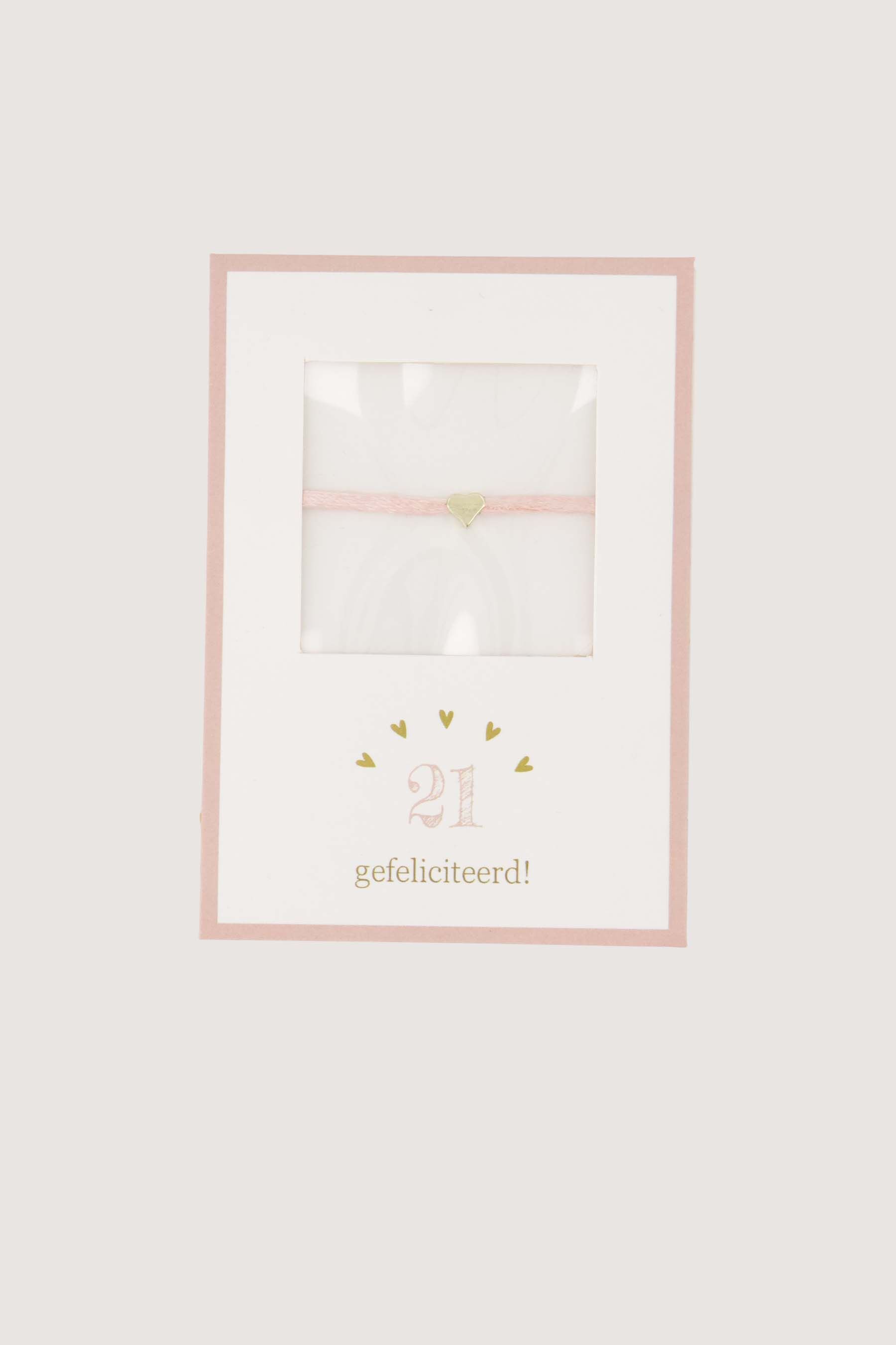 Het Zusss armbandje hartje 21 is een subtiele manier om een speciale 21e verjaardag te vieren. Dit fijne armbandje staat symbool voor een bijzondere mijlpaal en past perfect bij een feestelijk moment. Het armbandje komt in een lief lichtroze koord met een klein goudkleurig hartje, waardoor het een tedere uitstraling heeft. Het is een charmant cadeau voor wie iets betekenisvols zoekt, met een zachte, persoonlijke touch.Materiaal: 80% polyester / 20% messingKleur: WitVerstelbaar armbandjeMaat: 10,5x7,4cm