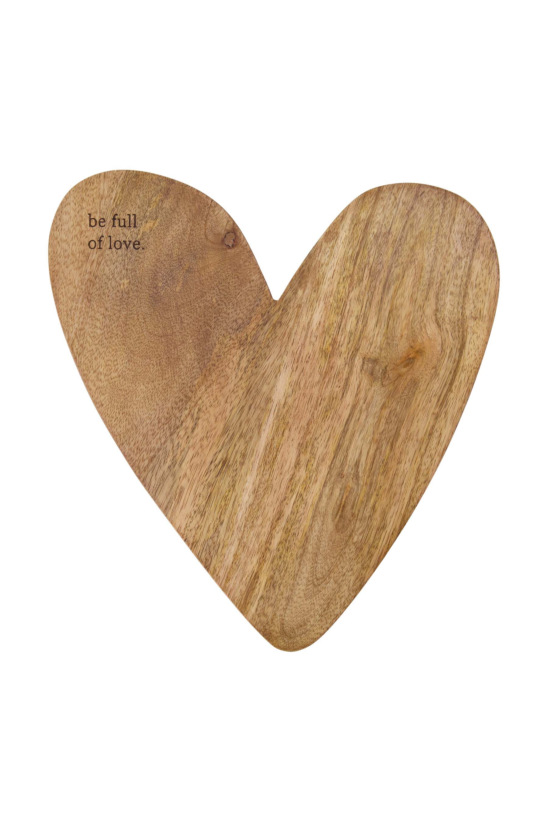 De Zusss borrelplank hart is perfect voor sfeervolle borrels. Deze borrelplank hart is gemaakt van duurzaam mangohout, met een natuurlijke kleur en een afmeting van ca. 29x28 cm. De borrelplank hart heeft een uniek hartvormig ontwerp en een mooie, warme houtstructuur met de tekst "be full of love." Ideaal om hapjes stijlvol te serveren