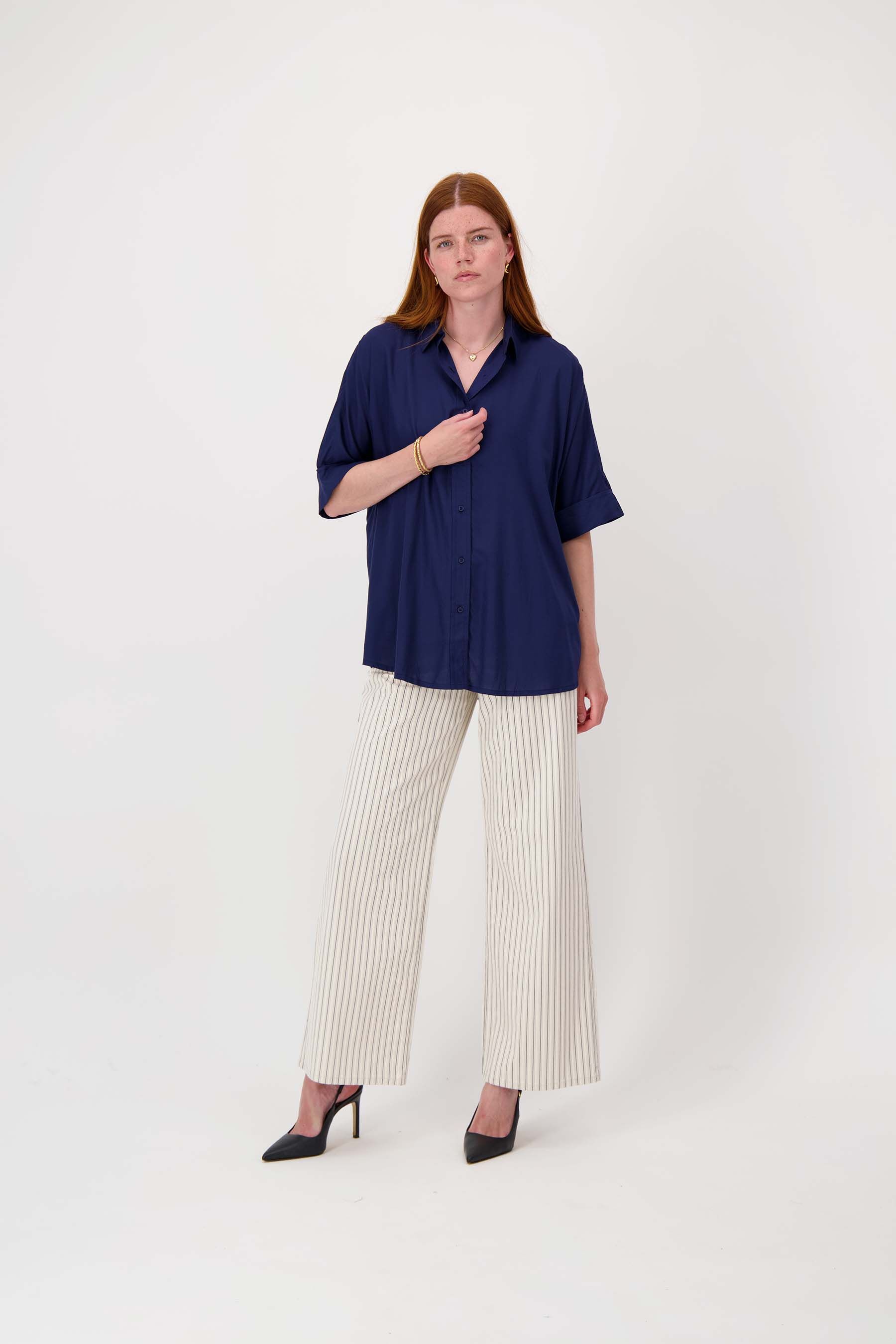 De Zusss blouse in boxy model is een perfecte keuze voor een lichte en luchtige zomeroutfit. Deze blouse in de kleur summer navy heeft een losse pasvorm met korte, omgeslagen mouwen en een knoopsluiting aan de voorkant. De blouse straalt een ontspannen maar toch verzorgde uitstraling uit, ideaal voor diverse gelegenheden. De navy kleur maakt het makkelijk te combineren met uiteenlopende kleuren en stijlen.