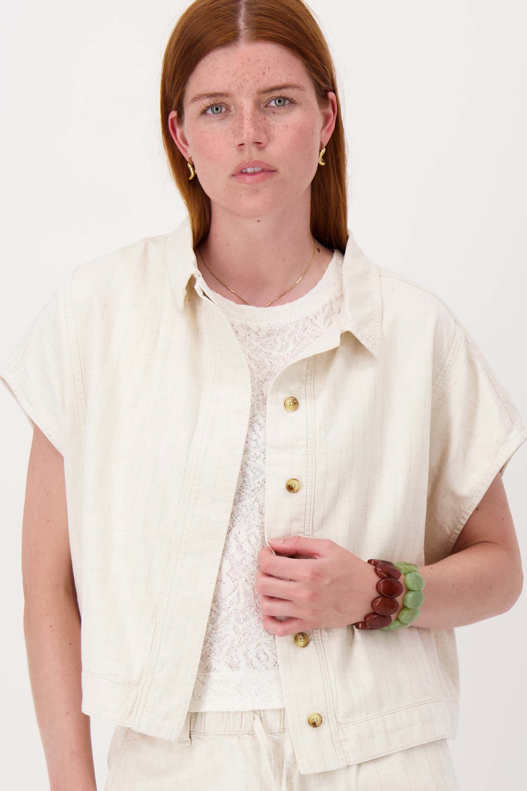 Het Zusss boxy streep jasje in linnen is een luchtig, comfortabel jasje dat perfect is voor een relaxte en stijlvolle look. Dit jasje heeft korte mouwen, een rechte pasvorm en subtiele gestreepte details die het een tijdloze uitstraling geven. Het jasje is uitgevoerd in een zachte kitkleur, Door de fijne linnenmix voelt het jasje licht en ademend aan, ideaal voor warmer weer. Kies voor dat natuurlijke, lichte gevoel met dit veelzijdige Zusss jasje. Materiaal: 59% katoen 29% modal 12% linnenKleur: beigeArtikelnummer: 0310-0010Model draagt maat S en is 180cm lang