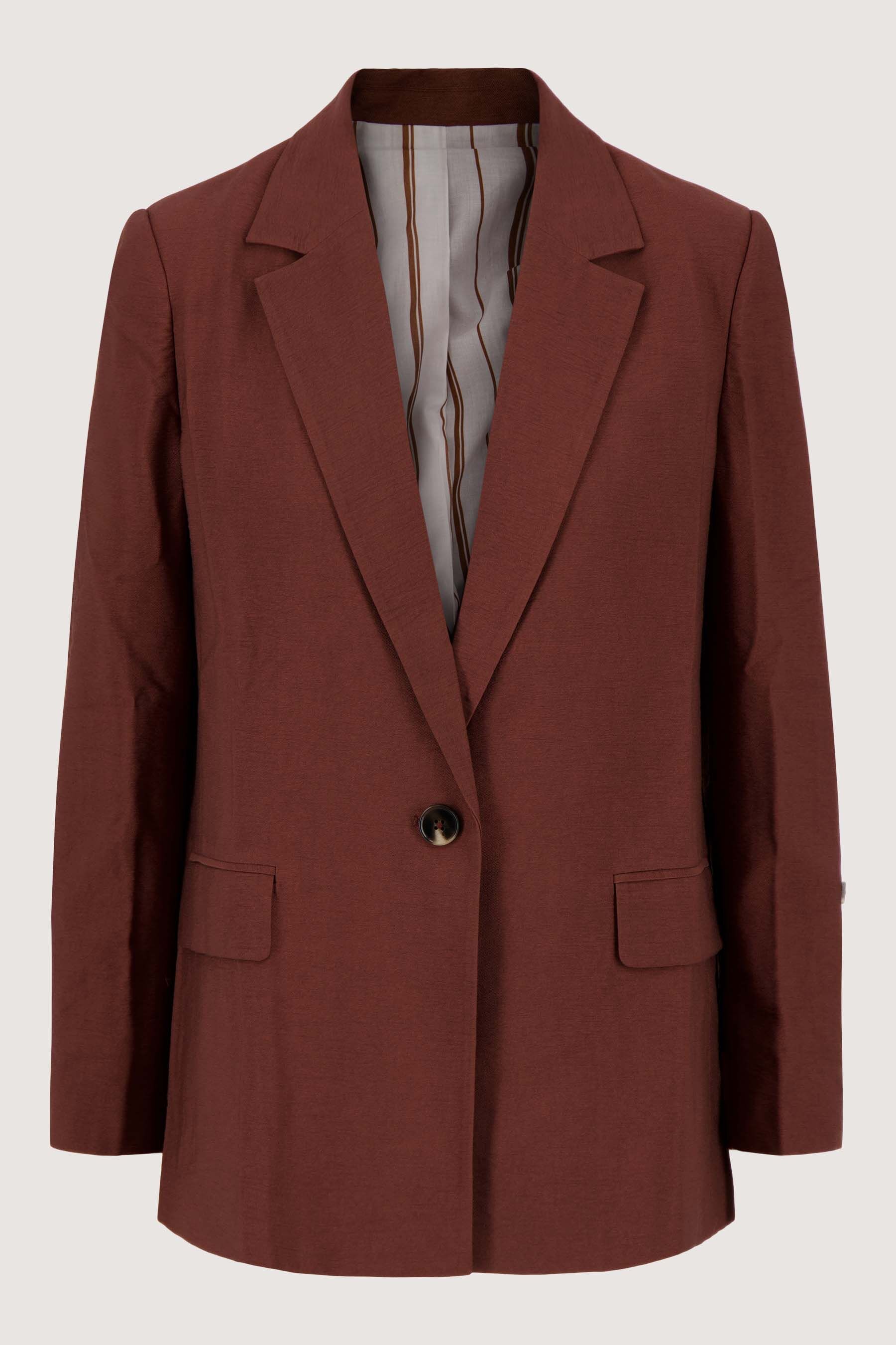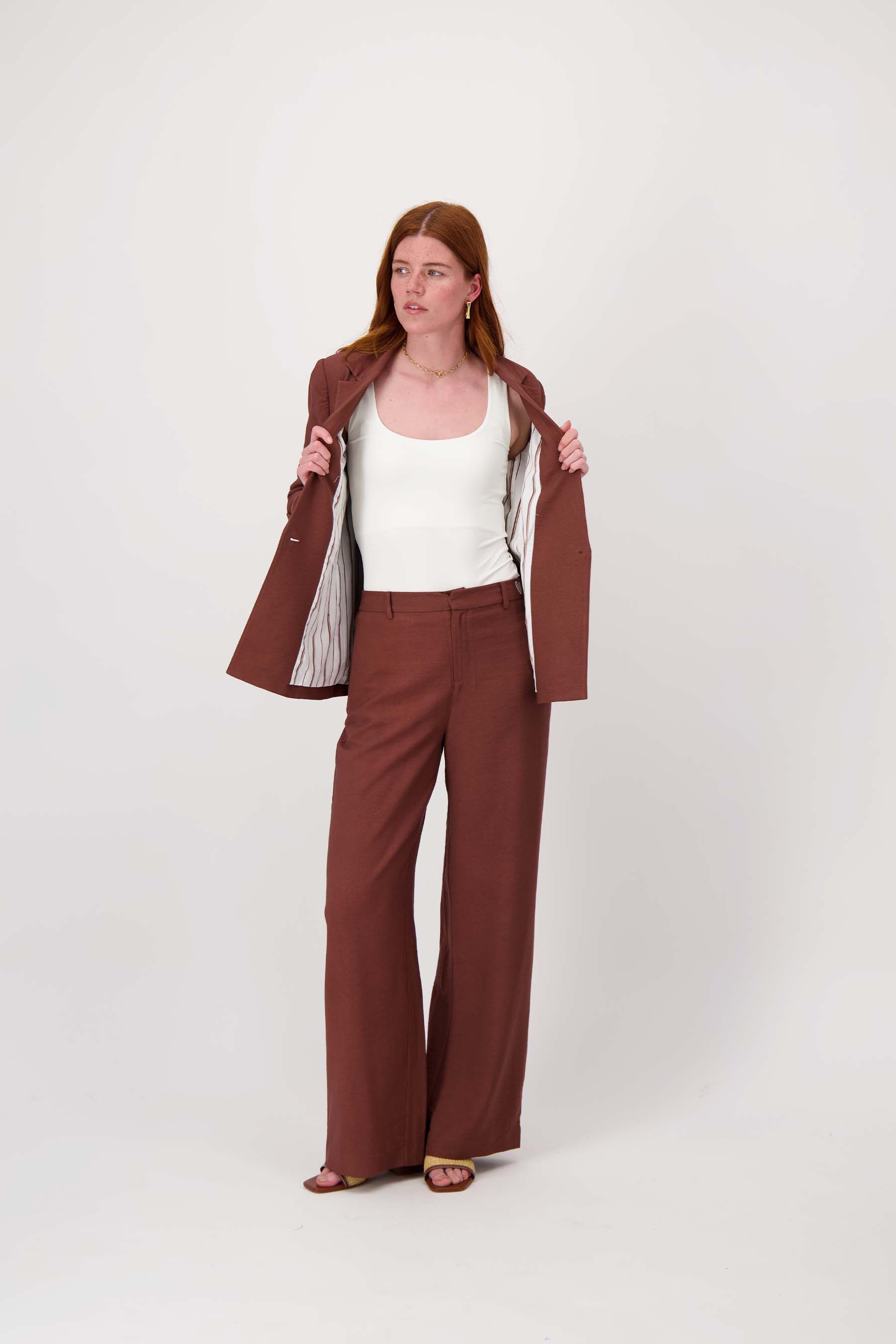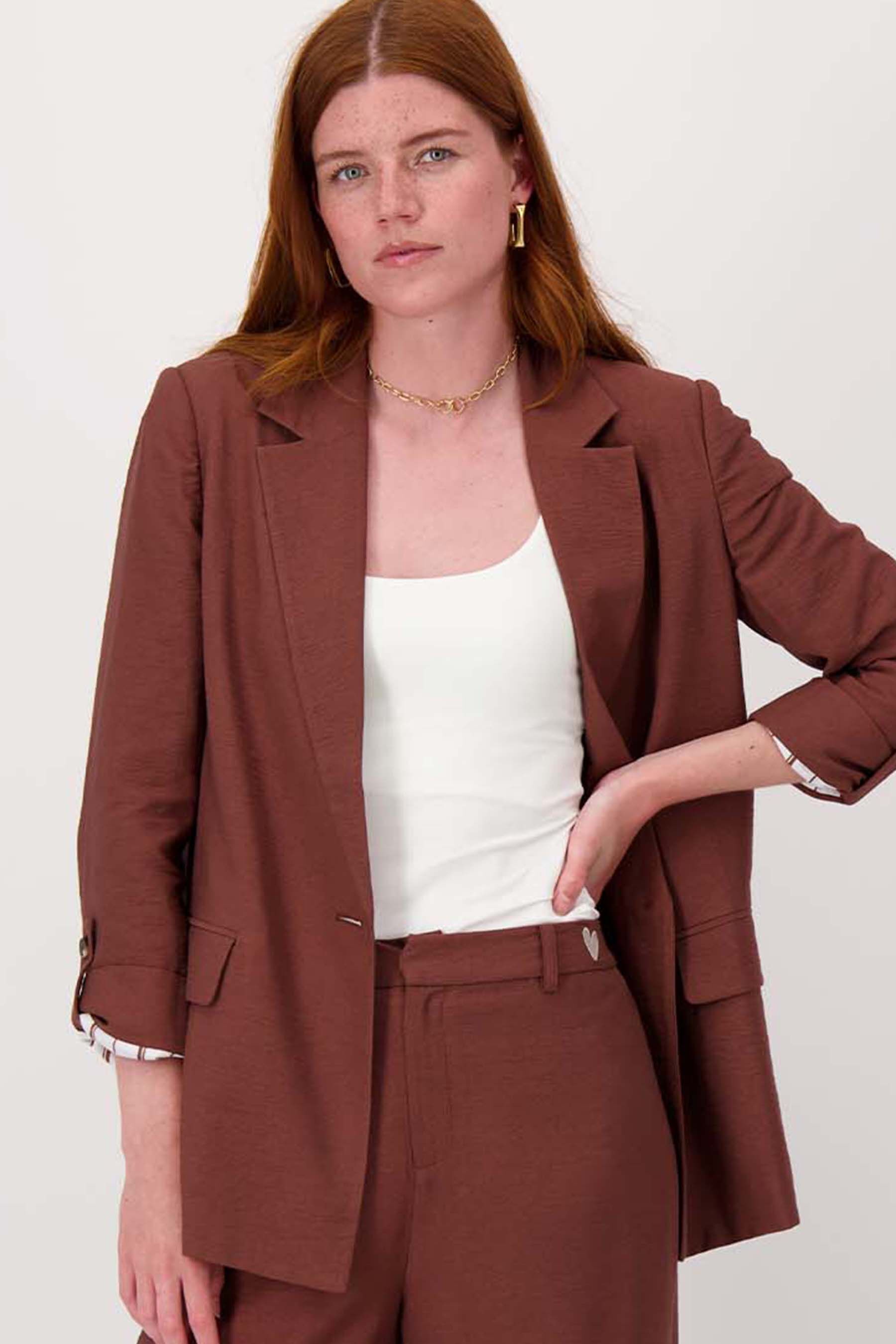 Dit Zusss damescolbert met oprolbare mouwen is een tijdloze must-have. Het colbert straalt casual elegantie uit dankzij de zachte bruin tint en de subtiele structuur van de stof. De mouwen zijn stijlvol oprolbaar, wat een speels accent geeft aan je outfit. Met één knoop sluiting en nette zakken past dit colbert perfect bij verschillende stijlen en gelegenheden. Het Zusss colbert met oprolbare mouwen voegt comfort en stijl toe aan jouw garderobe.