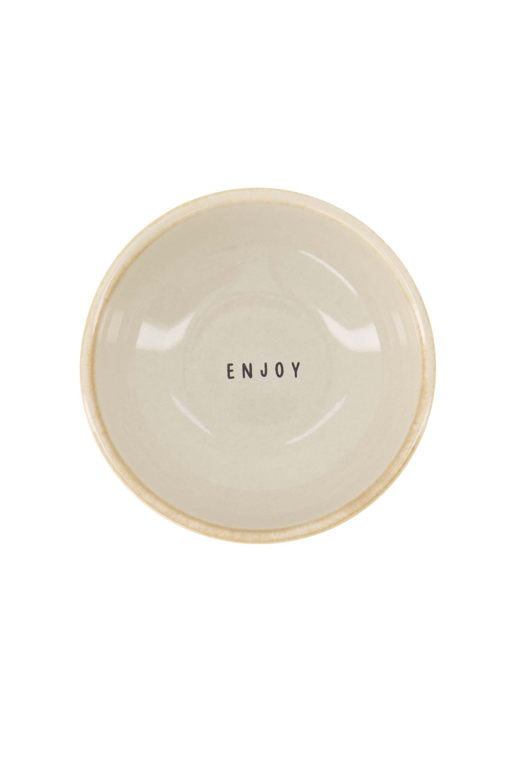Het Zusss dipschaaltje enjoy is perfect voor een sfeervol ontbijt of borrelmoment. Dit dipschaaltje enjoy is gemaakt van stevig keramiek, heeft een warme zandkleur en meet 10 cm in diameter. Met het subtiele 'enjoy' in het midden voeg je een vrolijke touch toe aan je tafel. Ideal voor kleine hapjes, dips of sausjes die jouw moment nét dat beetje extra geven.