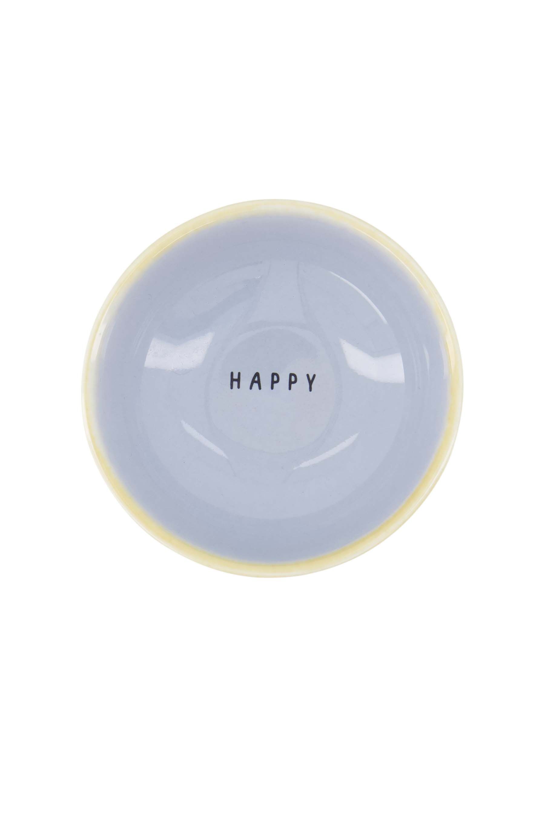 Het Zusss dipschaaltje lichtblauw is perfect voor het serveren van dips en sauzen. Dit dipschaaltje lichtblauw is gemaakt van duurzaam keramiek, met een lieve geelachtige rand en de tekst "HAPPY" in het midden. Met een diameter van 10 cm past het dipschaaltje lichtblauw gemakkelijk op je tafel. Het dipschaaltje lichtblauw geeft sfeer en vrolijkheid aan iedere maaltijd