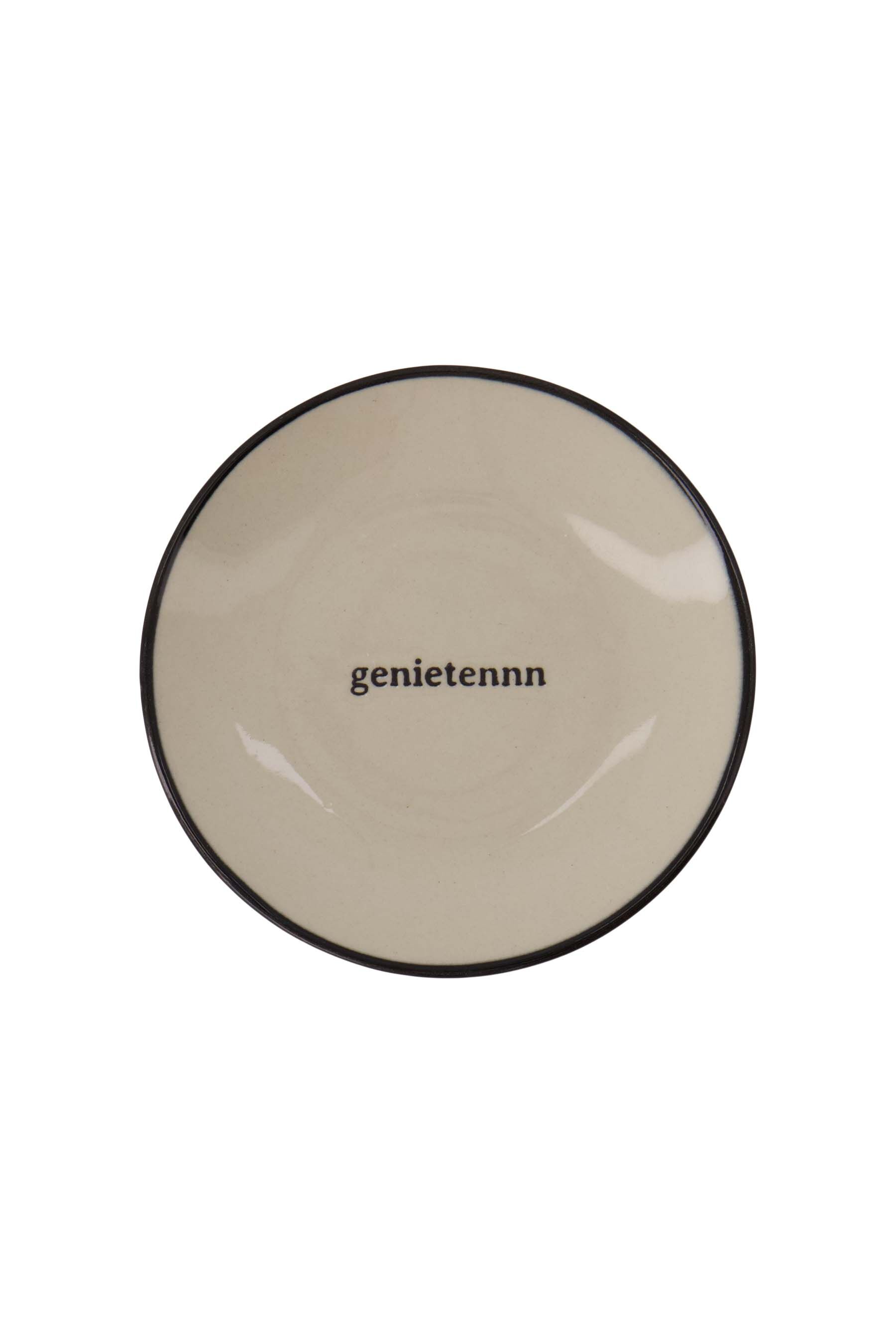 Het Zusss gebaksbordje zand is perfect om te genieten van jouw favoriete lekkernijen. Dit gebaksbordje zand heeft een warme zandkleur met een subtiele zwarte rand en handige tekst 'genietennn' in het midden. Gemaakt van stevig keramiek (kwaliteit: keramiek) en heeft een diameter van 16 cm, ideaal voor gebak of kleine hapjes. Combineer dit gebaksbordje zand met andere serviesstukken uit onze serviessets voor een complete en sfeervolle tafelsetting.