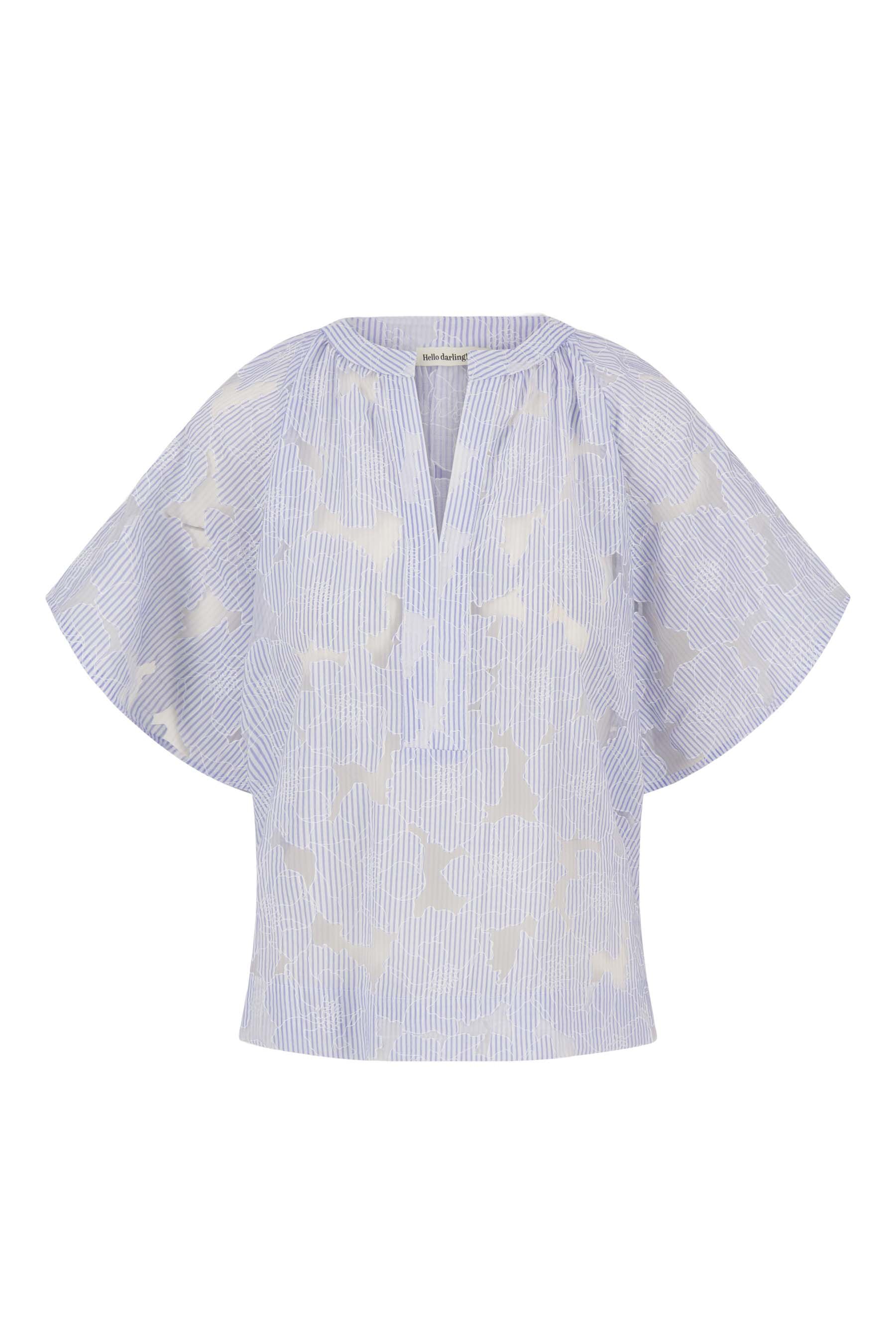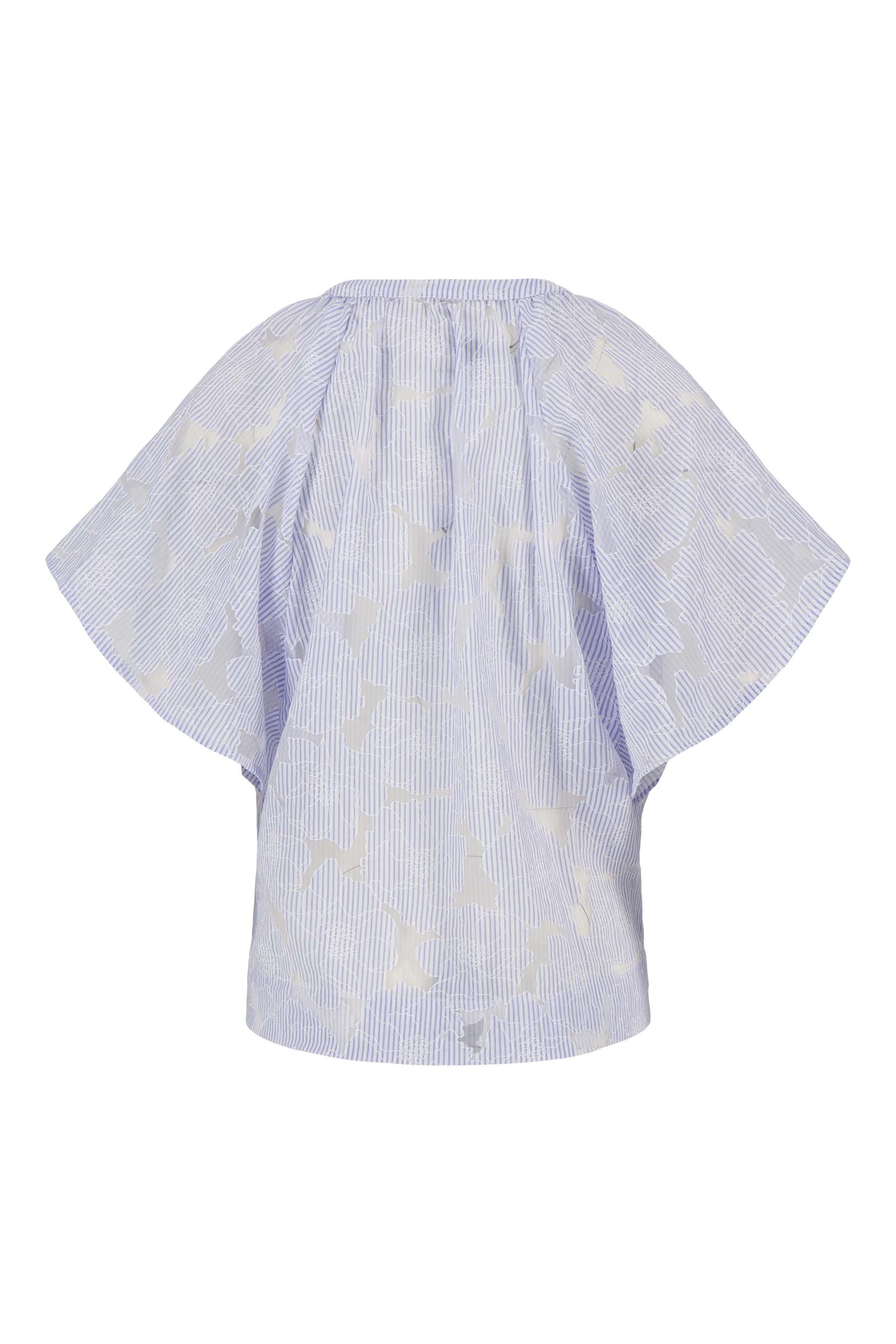 De Zusss gestreepte organza blouse is een echte eyecatcher voor je garderobe. Deze blouse heeft een lichte, luchtige uitstraling dankzij het transparante organza met subtiele strepen en een mid blue / off white kleurenschema. De blouse kenmerkt zich door korte, wijde mouwen en een elegante split aan de hals, perfect voor een moeiteloze, stijlvolle look. De blouse valt comfortabel en is een must-have voor het voorjaar en de zomer.