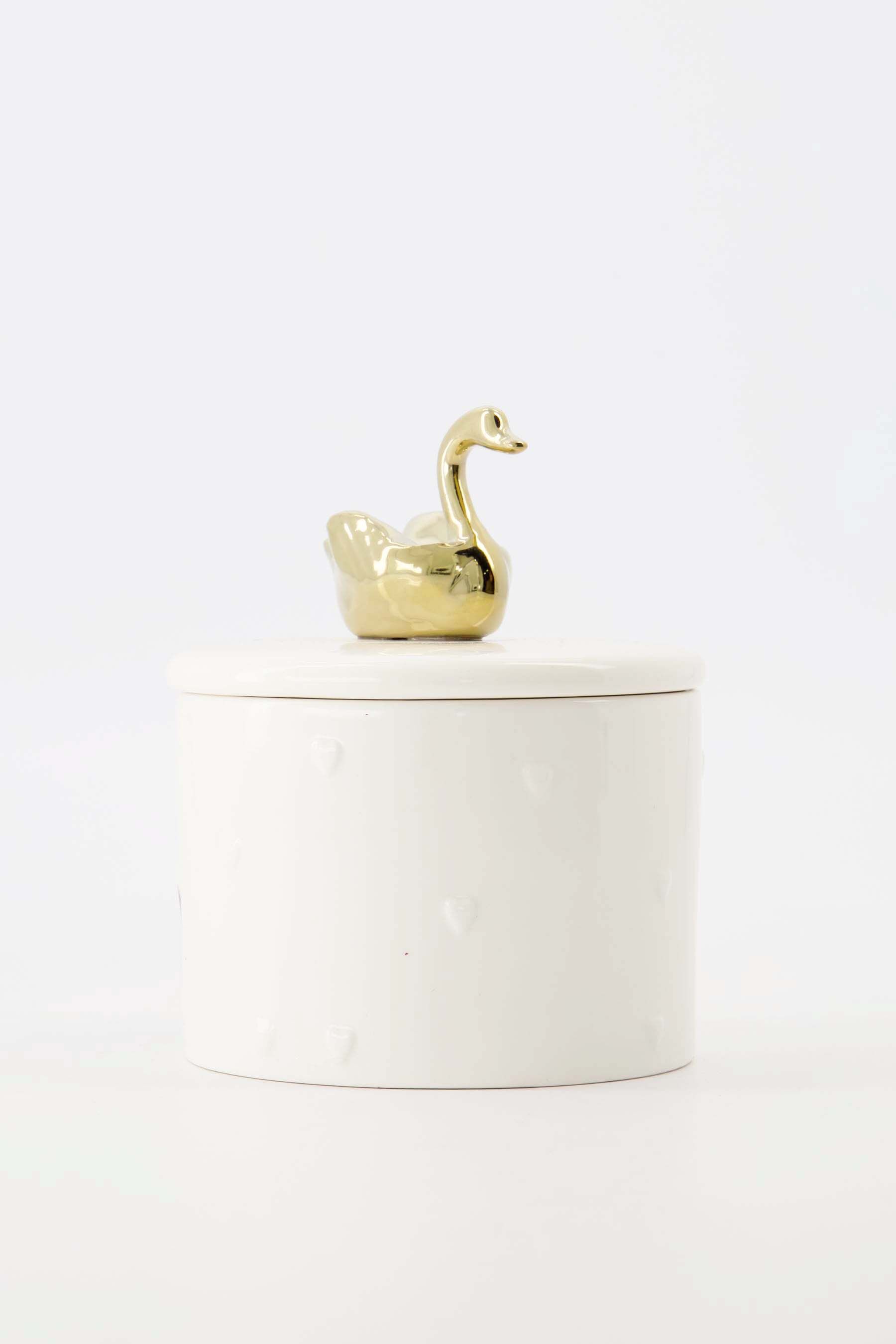 Zusss geurkaars keramiek met deksel M zwaan wit/go