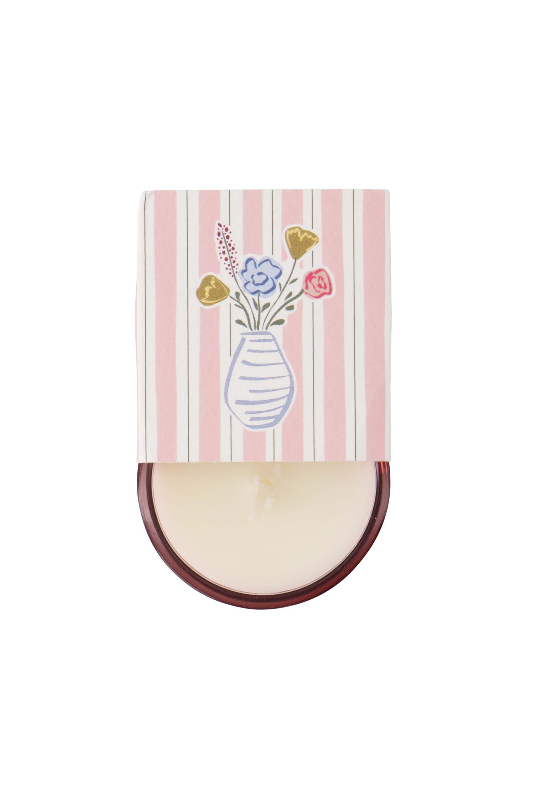 De Zusss geurkaars met wikkel zorgt voor een warme en sfeervolle ambiance in elke ruimte. Deze geurkaars is gemaakt van hoogwaardige materialen en heeft een lichtroze en witte wikkel met een lief bloemenmotief. Met een compacte maat van 6,6 x 4,4 cm past deze Zusss geurkaars perfect in jouw interieur of als attent cadeautje