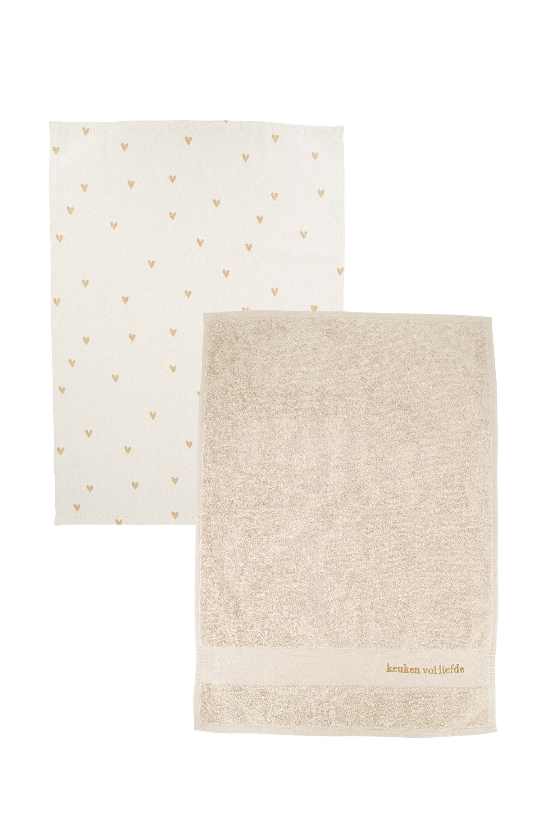 De Zusss keukenset hartjes brengt sfeer en warmte in je keuken met deze must-have keukenset hartjes. De set bestaat uit een wit theedoek met oker hartjesprint en een zachte okerkleurige keukendoek van 100% katoen, perfect voor dagelijks gebruik. Met afmetingen van 50 x 70 cm voegen deze keukensetjes niet alleen stijl toe, maar zijn ook functioneel. Geschikt voor wie houdt van een keuken vol liefde en gezelligheid. Ontdek meer fijne keukenaccessoires in onze keukencollectie voor jouw huiselijke sfeer.