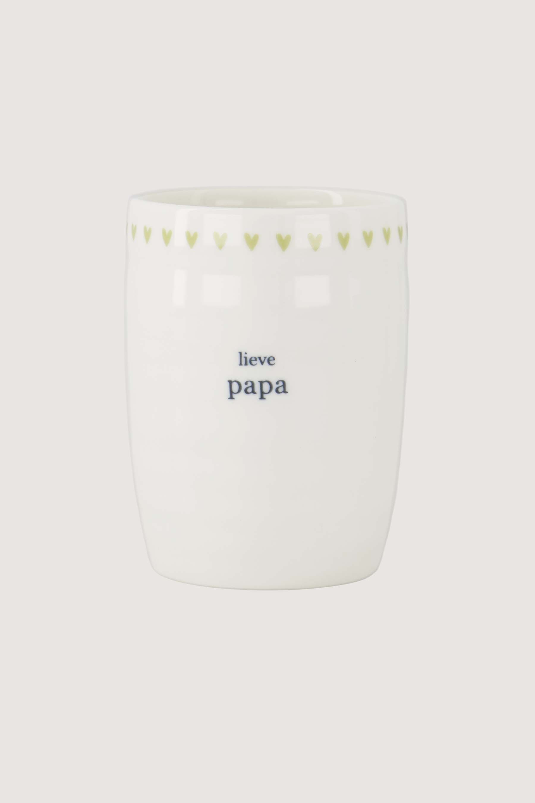 De Zusss koffiemok lieve papa brengt een warm en persoonlijk moment in elke koffiepauze. Deze koffiemok met lieve papa is uitgevoerd in wit keramiek, afgewerkt met een fijn, lichtgroen hartjesrandje voor een zachte uitstraling. Ideaal voor papa’s die genieten van een rustig moment met koffie of thee. Deze koffiemok geeft een knusse, liefdevolle touch aan elke ochtendroutine en is een mooi cadeautje dat simpel, maar bijzonder voelt.Materiaal: keramiekKleur: WitInhoud: 225ml / Magnetron- & vaatwasmachinebestendigMaat: Ø7,2x9,5cm