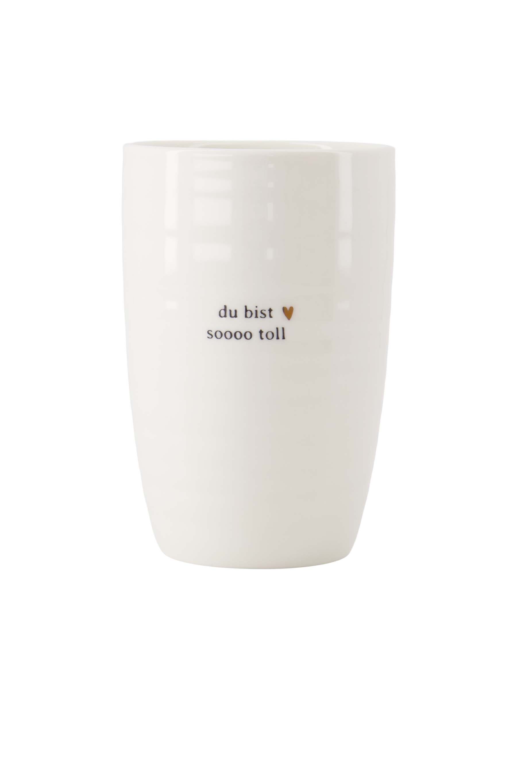 De Zusss mok met tekst is een prachtige witte beker met de opdruk "du bist sooo toll", perfect voor liefhebbers van unieke mokken. Deze Zusss mok combineert stijl en comfort en is gemaakt van hoogwaardig keramiek, wat zorgt voor duurzaamheid. Met een inhoud van 360 ml (maat L) is deze witte mok ideaal voor koffie of thee. De subtiele zwarte tekst en het kleine gouden hartje maken deze Zusss mok een leuke toevoeging aan je servies.