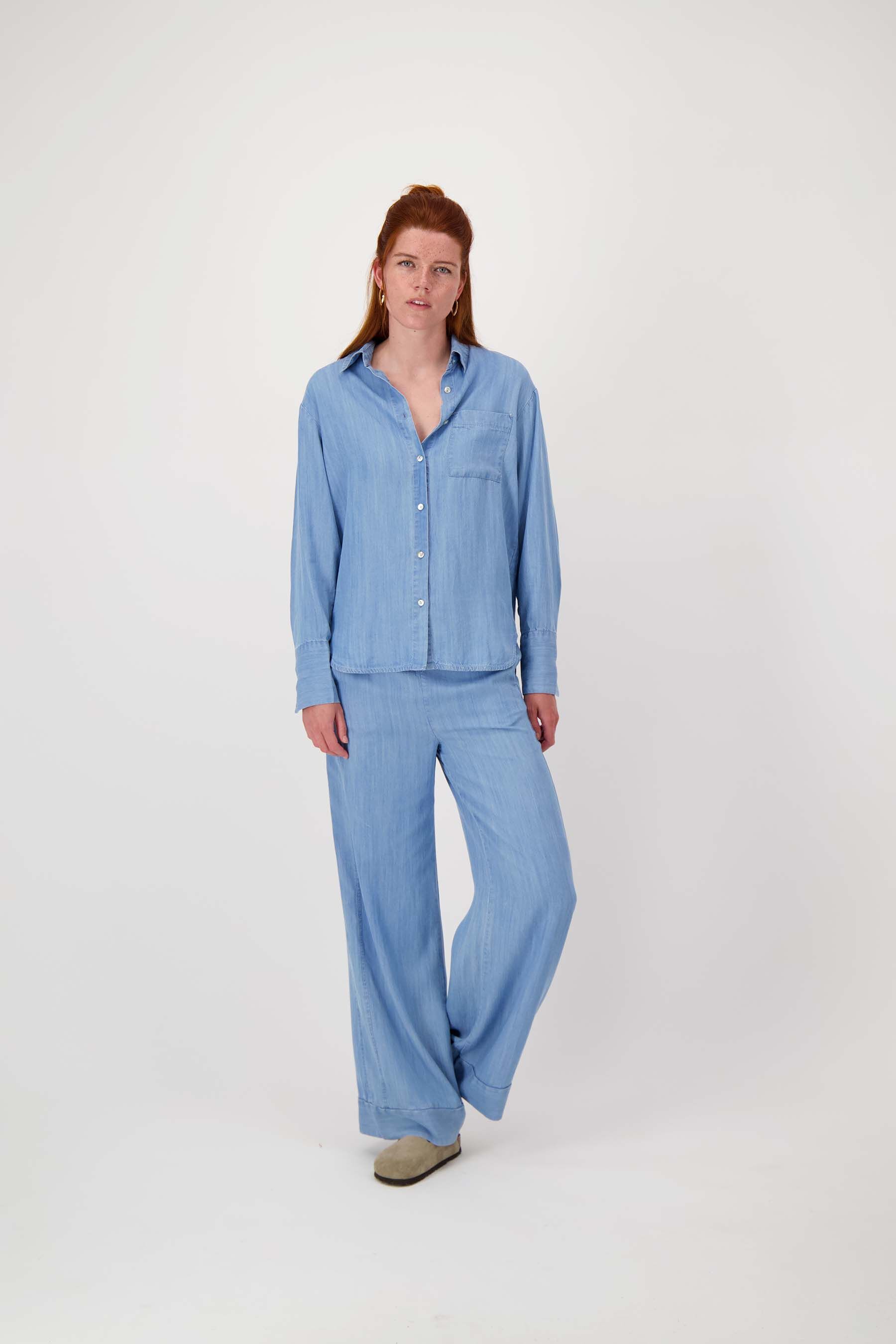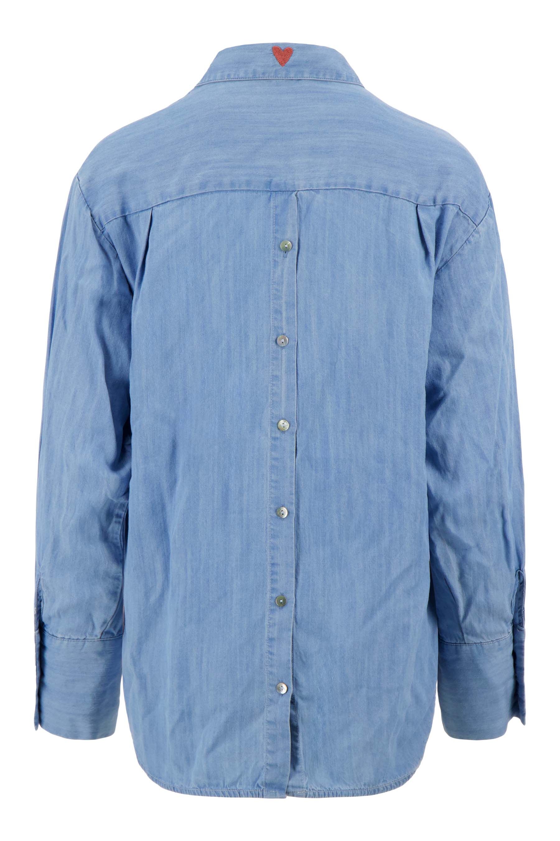 Deze lange denim blouse van Zusss is een must-have in je garderobe. De lange denim blouse komt in een tijdloze light blue denim kleur en heeft een relaxte pasvorm met een klassieke kraag en knoopsluiting. De blouse valt lang en stijlvol, perfect voor casual dagen of als laagje over je favoriete basics.Materiaal: 100% viscoseKleur: Blauw