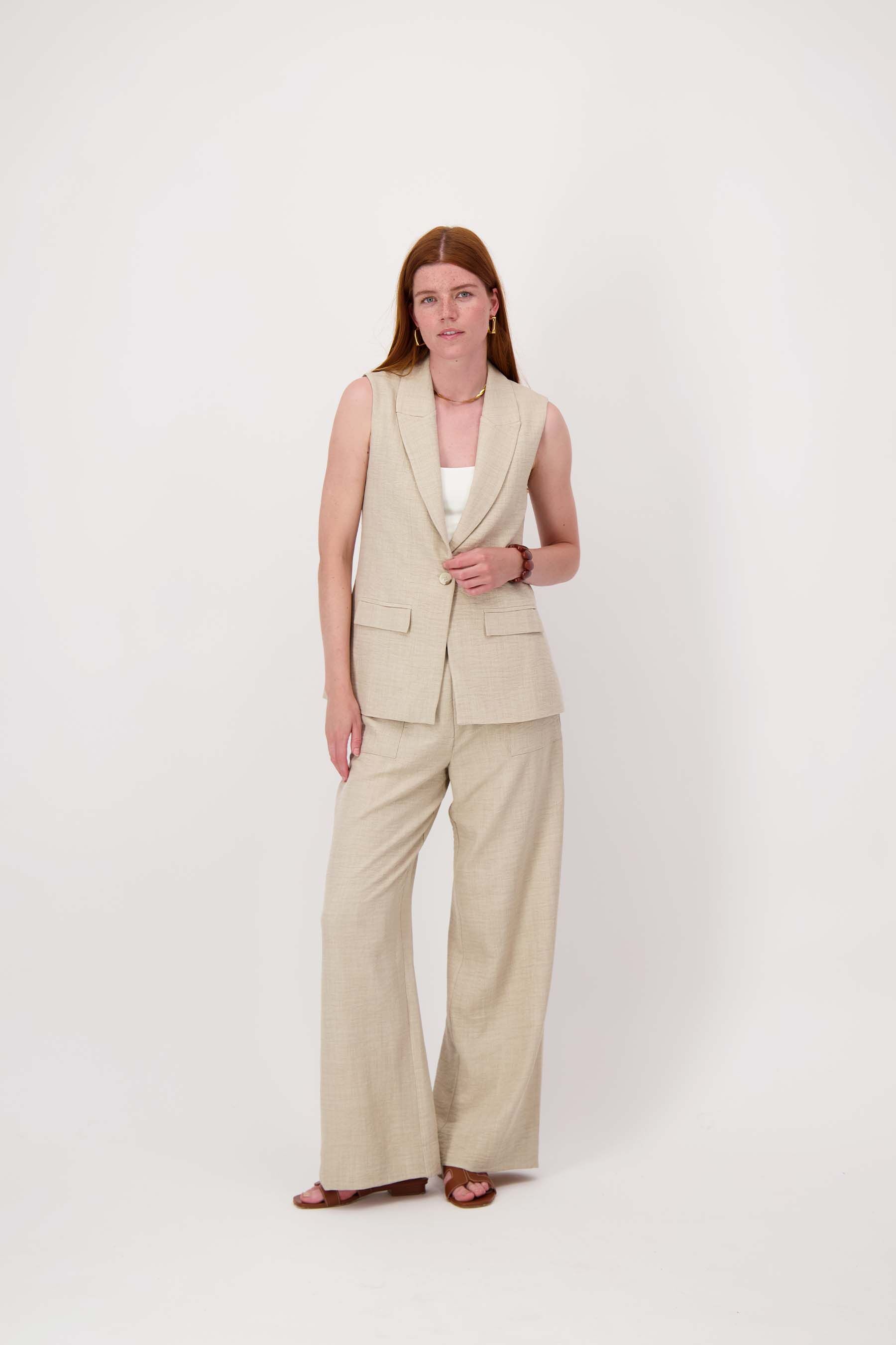 Losvallende broek met stretch en een tijdloze uitstraling: deze broek van Zusss is een fijne basis voor elke dag. De losvallende broek met stretch is gemaakt van een soepele stof met stretch, wat zorgt voor extra draagcomfort en een mooie fit. De lichte beige tint geeft de broek een rustige, natuurlijke look en is makkelijk te combineren. Dankzij de wijde pijpen en elastische kwaliteit beweegt hij fijn met je mee. De losvallende broek met stretch heeft een normale lengte en valt elegant langs het been.