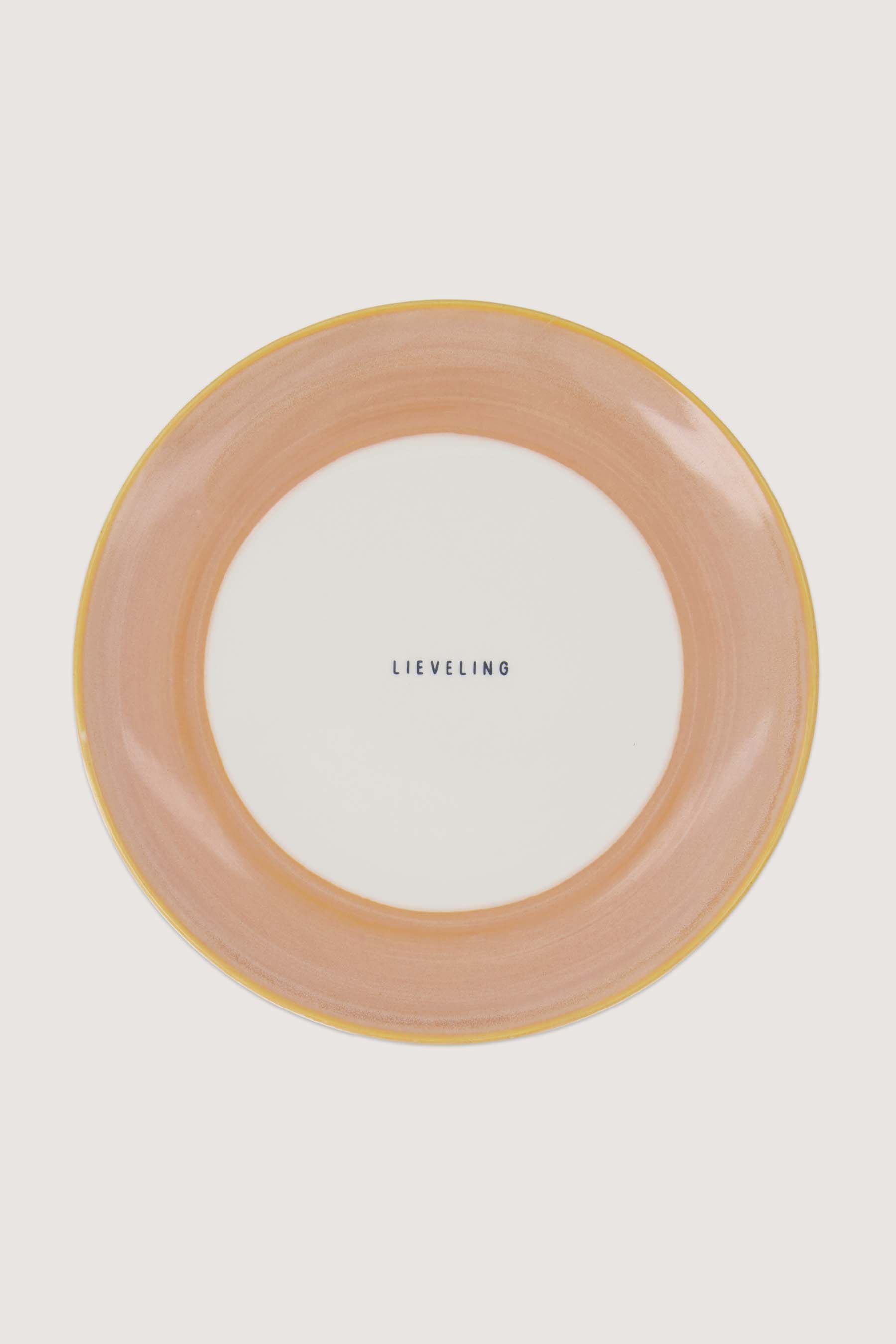Het Zusss ontbijtbordje is een fijn begin van de dag met de subtiele tekst ‘lieveling’ in het midden. Dit ontbijtbordje geeft een warme touch aan je servies door de zachte lichtroze kleur aan de rand, afgewerkt met een fijne gele rand. Het is eenvoudig maar oogstrelend en maakt ontbijten extra bijzonder. Dit ontbijtbordje voelt uitnodigend voor een ontspannen ontbijtmoment, of het nu voor jezelf is of om je dierbaren mee te verrassen.Materiaal: keramiekKleur: WitMagnetron- & vaatwasmachinebestendigMaat: Ø20x1,5cm