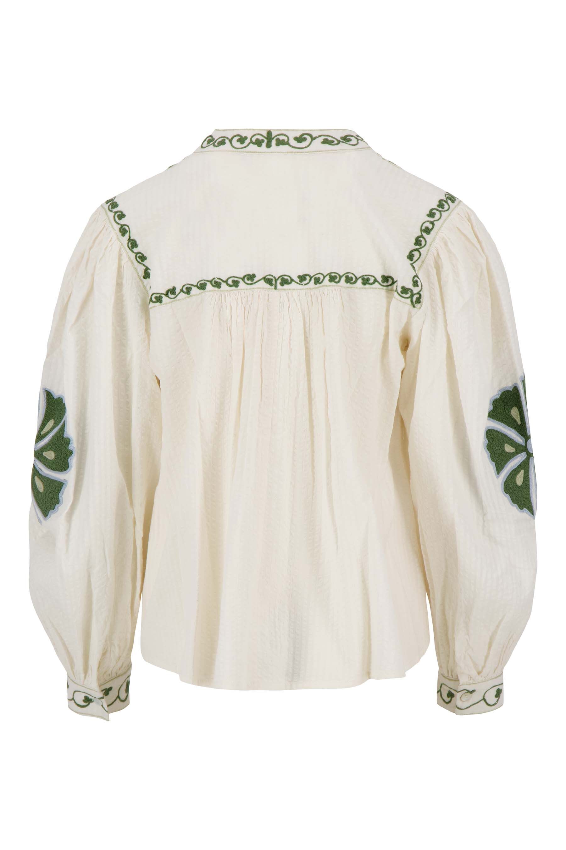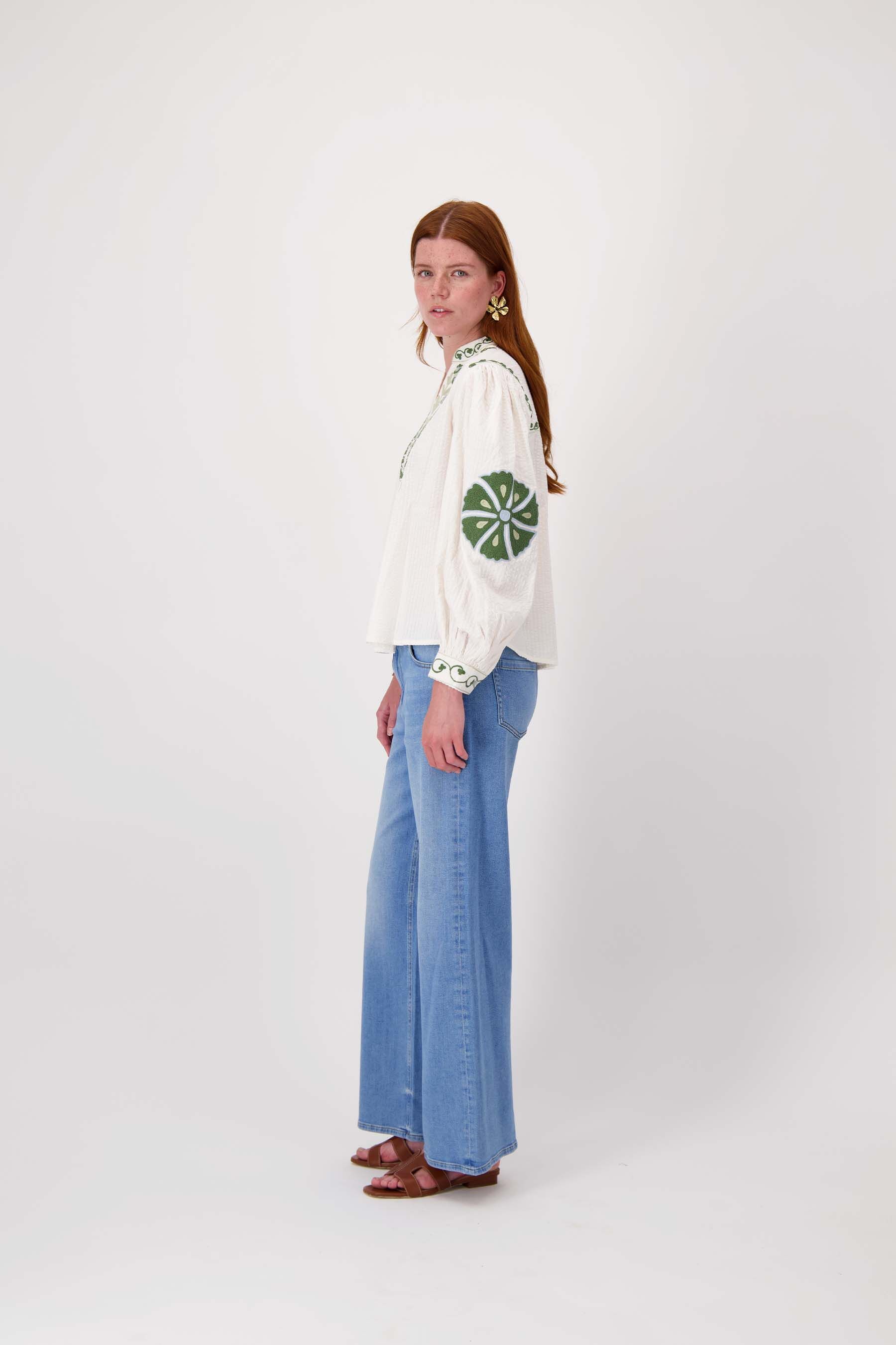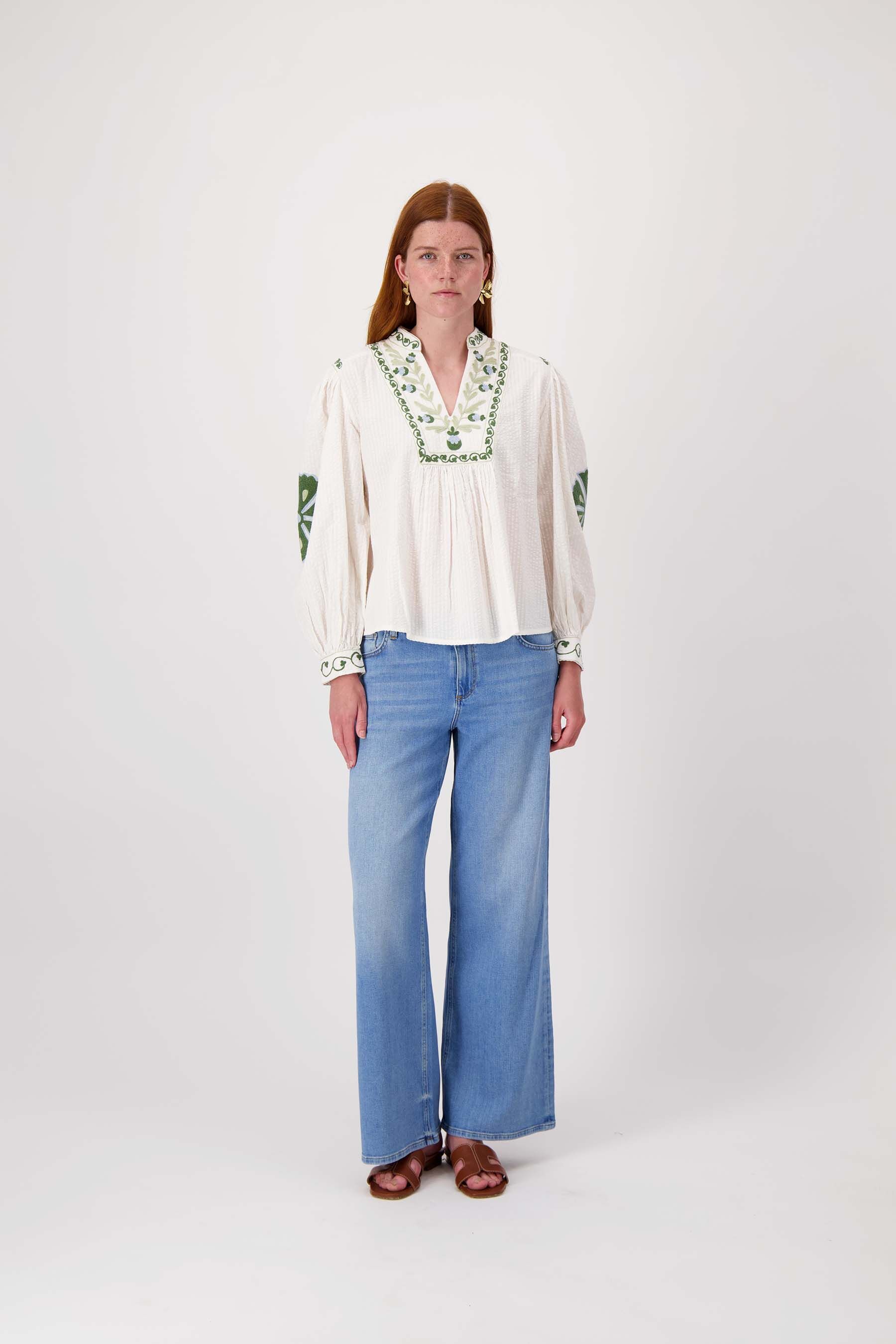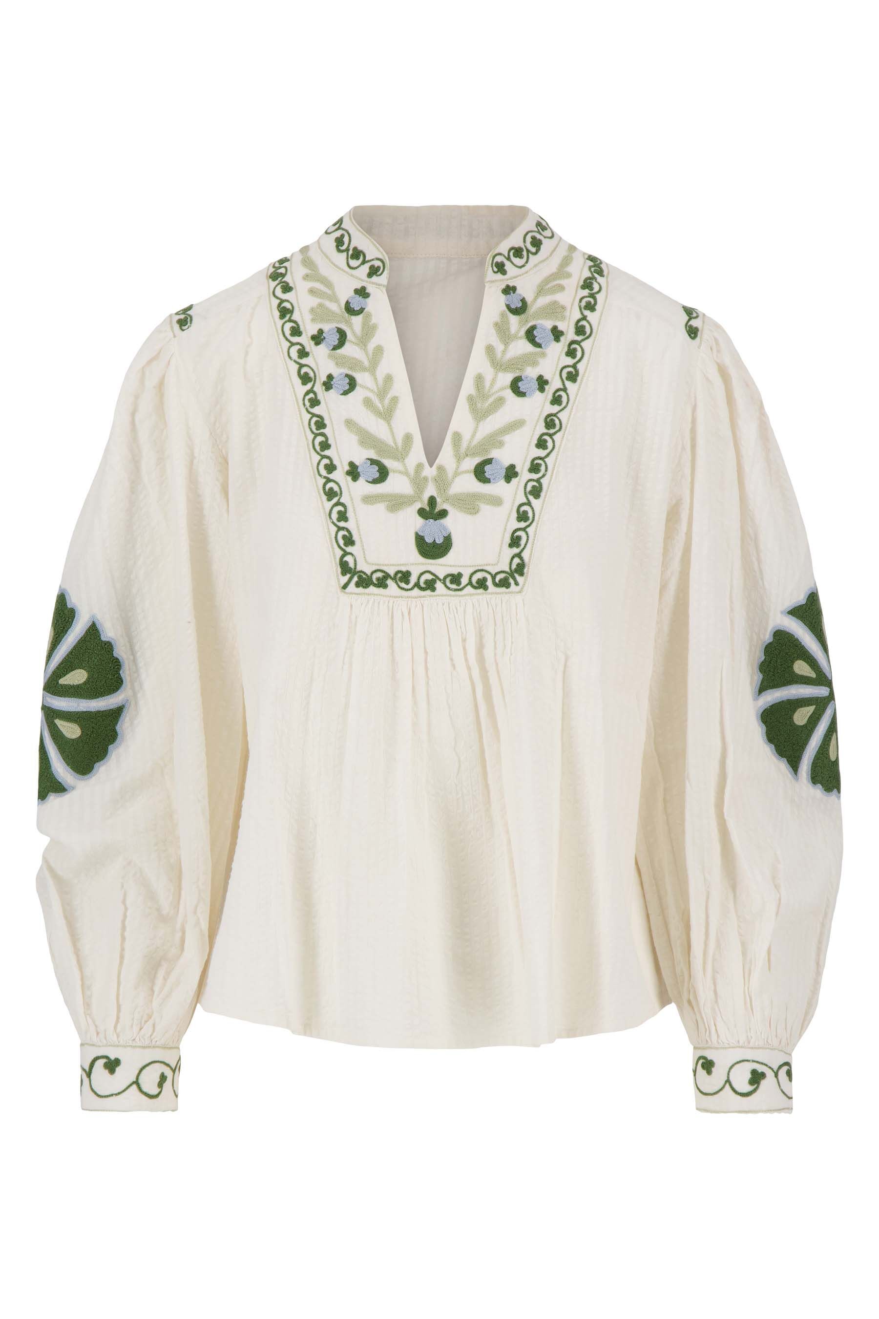 DetailsDe Zusss seersucker blouse met bloemen is een stijlvolle must-have voor jouw garderobe. Deze blouse valt op door het delicate bloemmotief in mossgreen op een off white achtergrond. De blouse heeft een lichte, gestructureerde stof en een losse fit die heerlijk draagt. Het bloemmotief siert subtiel de mouwen, hals en manchetten, wat zorgt voor een verfijnde uitstraling. Materiaal: 100% katoenKleur: Groen