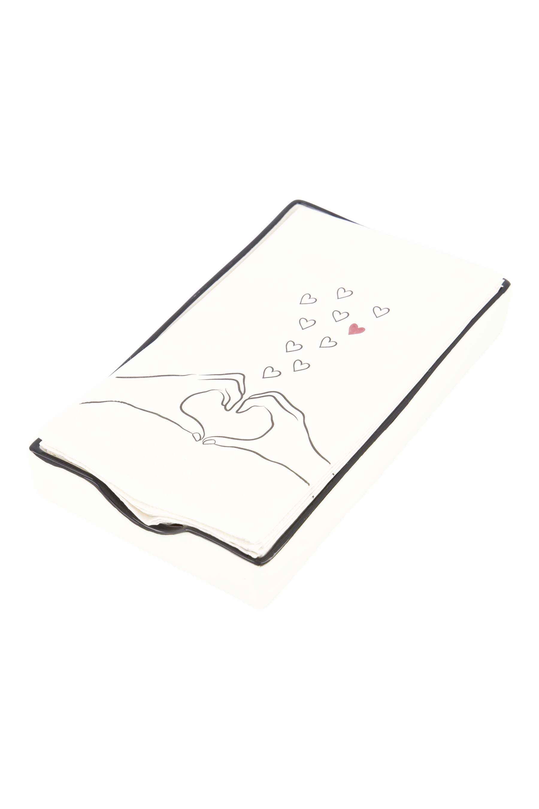 De Zusss keramieken servethouder wit is een elegant item voor jouw serviescollectie. Deze servethouder is gemaakt van hoogwaardig keramiek en heeft een strakke, rechthoekige vorm met een verfijnde zwarte rand. Het witte oppervlak met een klein zwart hartje in het midden geeft een charmante uitstraling. Met de afmetingen van 19 cm bij 11 cm past deze servethouder perfect op elke tafel.