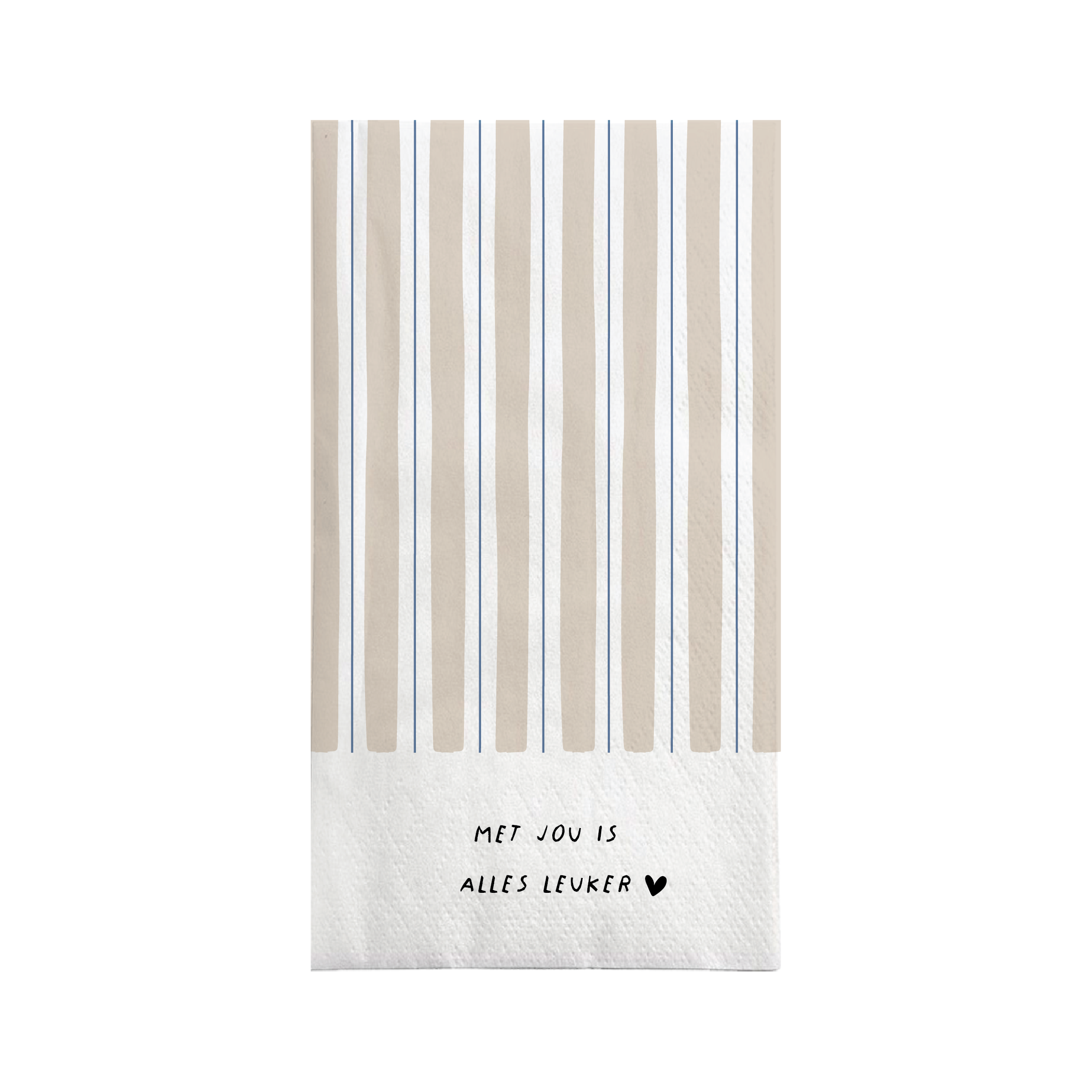 De Zusss servetten met leuke tekst maken elke tafel sfeervoller. Deze servetten met de tekst "Met jou is alles leuker" combineren zandkleurige en lila strepen voor een frisse uitstraling. Gemaakt van stevig papier, passen ze perfect bij een gezellige borrel of diner. De afmeting van deze servetten is rechthoekig en ze zijn ideaal te combineren met andere feestelijke Zusss servetten en tafelaccessoires.