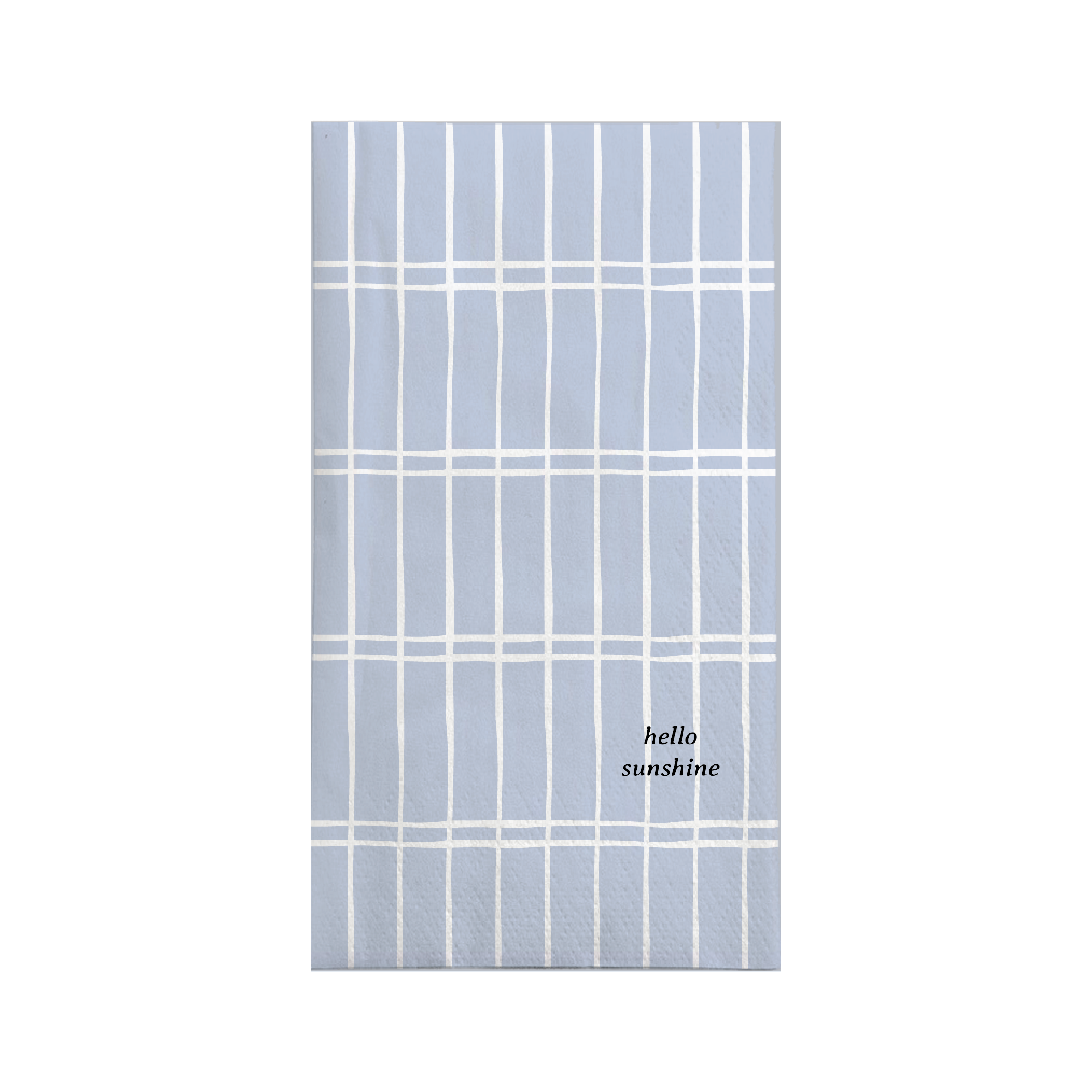 De Zusss servetten met ruit zijn dé eyecatcher op jouw tafel. Deze servetten zijn gemaakt van stevig papier in een grijsblauwe kleur met een subtiele goudkleurige 'hello sunshine' tekst. Met hun rechthoekige vorm en het speelse ruitpatroon geven ze jouw tafeldecoratie een stijlvolle en vrolijke touch. De afmetingen van deze servetten passen perfect bij elke gelegenheid