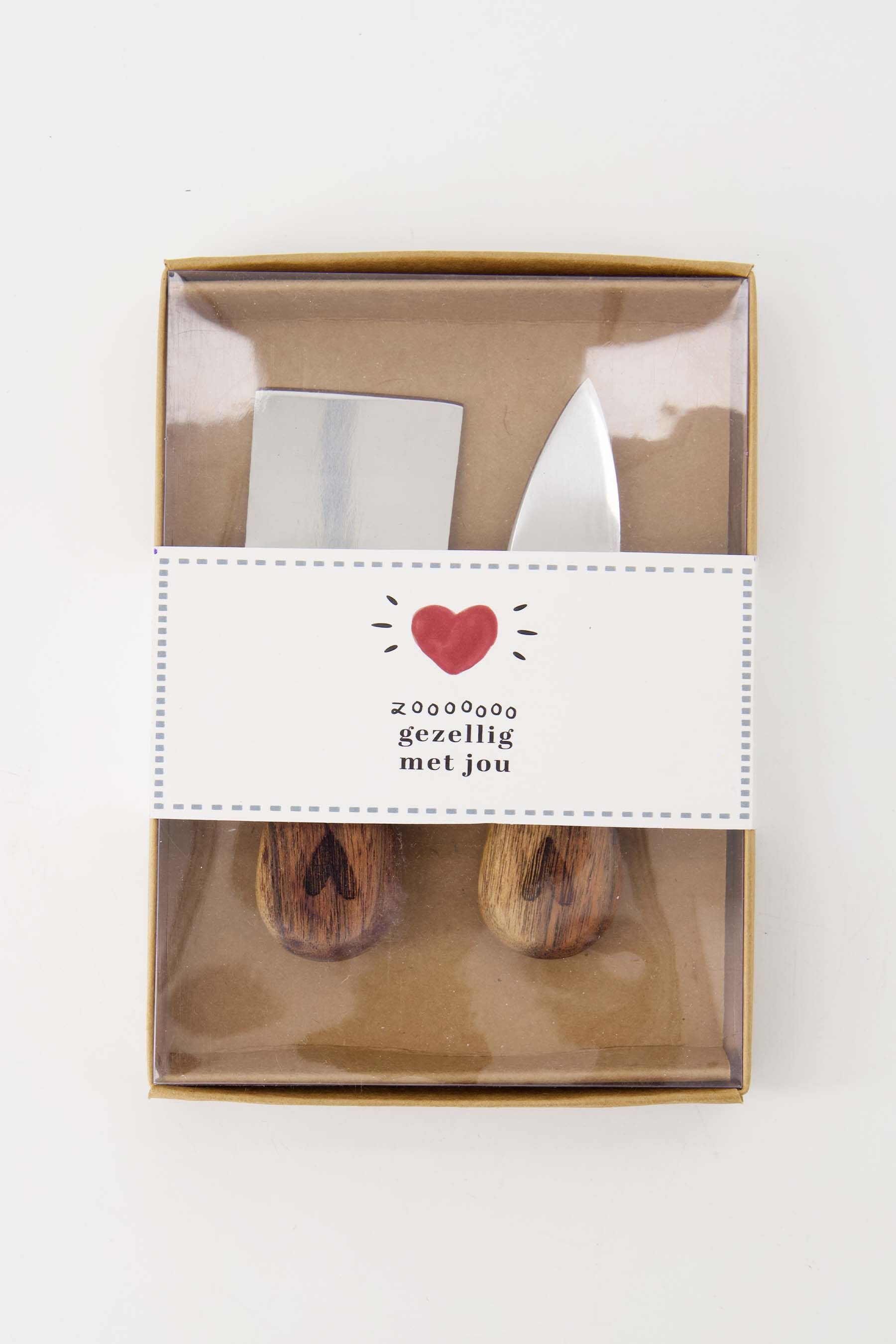 Zusss set van 2 kaasmesjes in doosje gezellig met
