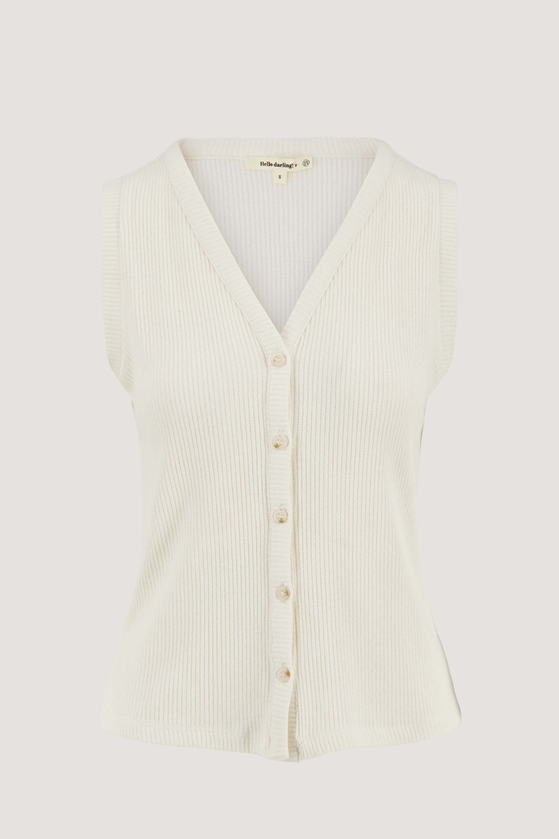 Deze singlet rib met knopen van Zusss is een veelzijdige musthave voor wie houdt van subtiele details. De singlet rib met knopen heeft een fijne, geribbelde structuur en knopen aan de voorkant die het dragen makkelijk maken. In een zachte, witte kleur die zich moeiteloos laat combineren met andere basics en accessoires.Materiaal: 44% katoen 54% polyester 2% elastaanKleur: Wit