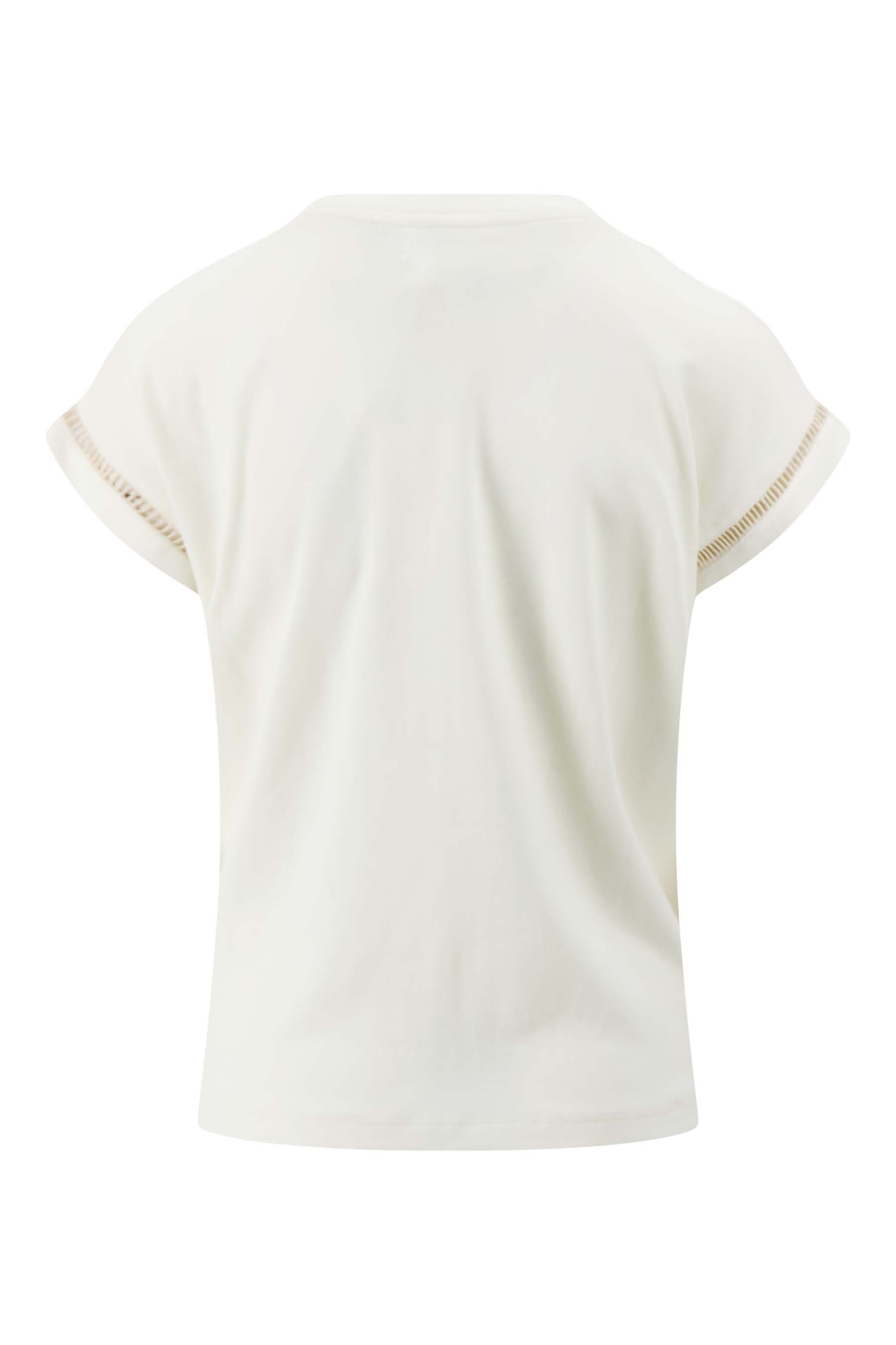Dit Zusss t-shirt met opengewerkte details geeft je outfit net dat beetje extra. Het off white shirt valt op door het subtiele ajourwerk, wat zorgt voor een frisse, luchtige uitstraling. Het t-shirt is ideaal voor warme dagen én makkelijk te combineren met jeans of een rok. De opengewerkte details maken dit shirt perfect voor wie houdt van fijne, vrouwelijke accenten zonder gedoe.