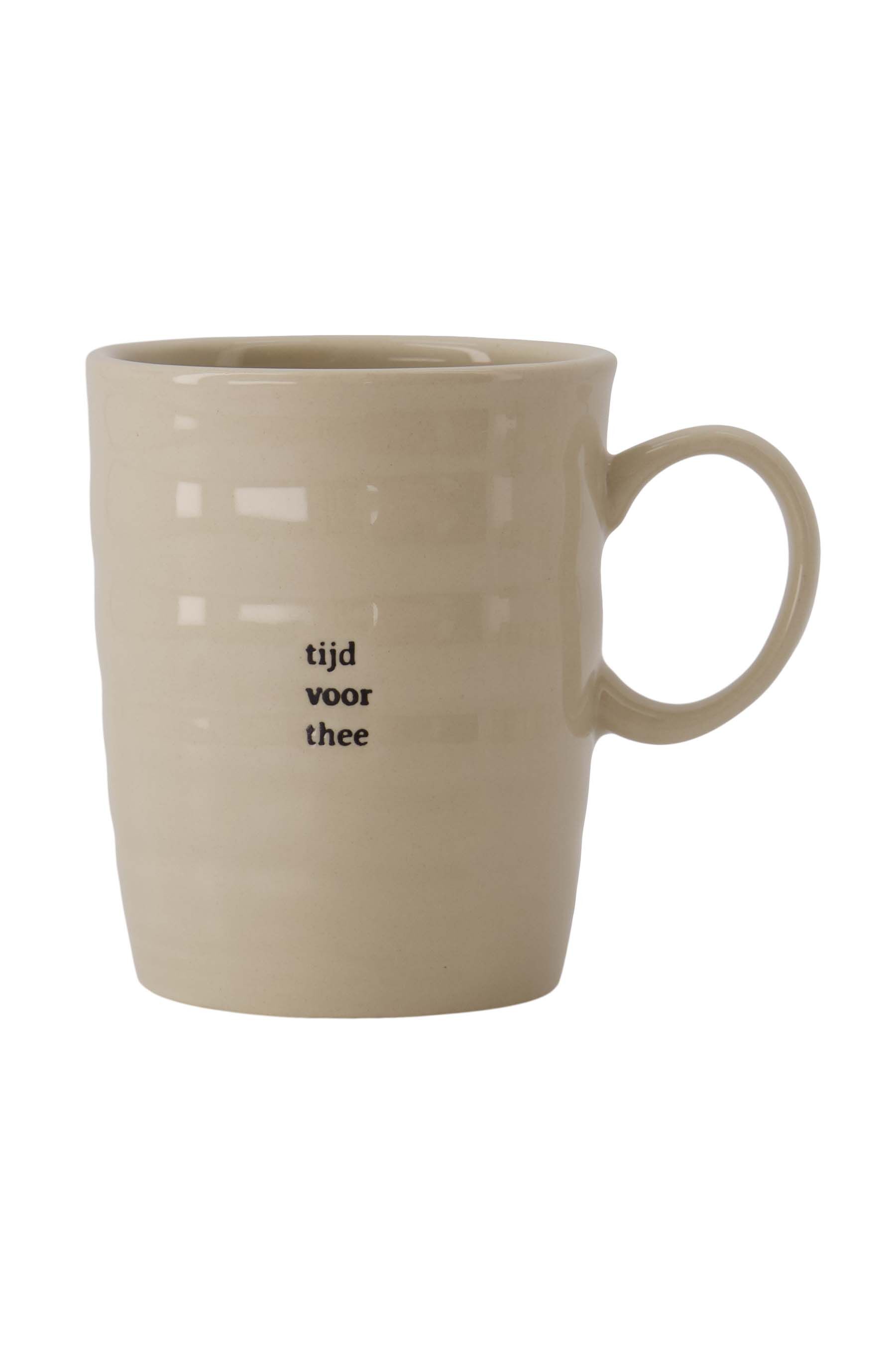 De Zusss theemok zand is perfect voor elk theemoment. Deze theemok zand is gemaakt van stevig keramiek en heeft een warme, natuurlijke zandkleur die rust uitstraalt. Met afmetingen van ongeveer 9 cm hoog en een comfortabele oorring, geniet je eenvoudig van je favoriete thee. Deze Zusss theemok zand heeft een speels, handgemaakt effect door het lichte reliëf en de opdruk ‘tijd voor thee’ in zwarte letters.